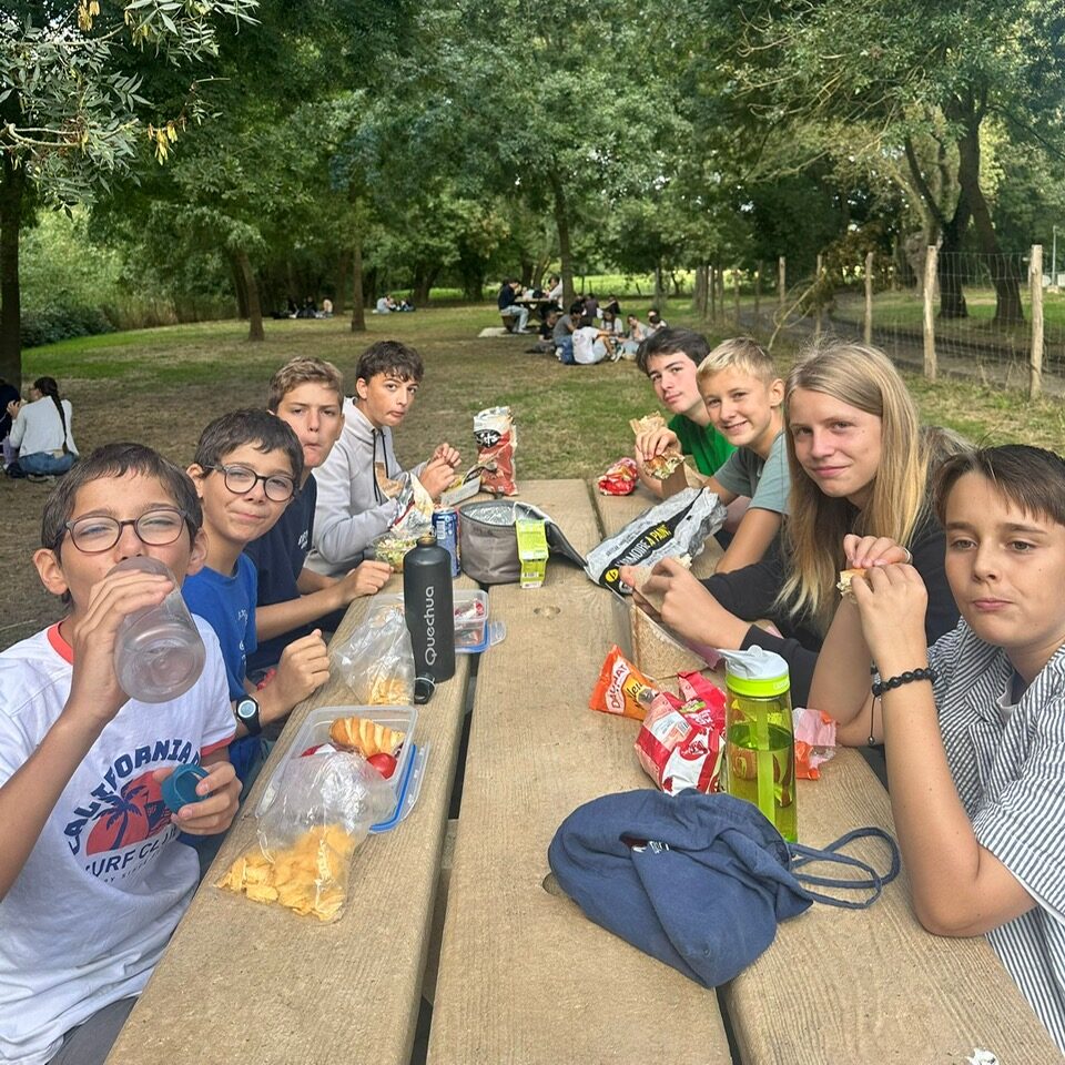 Nous sommes partis du collège à pied et avons emprunté la voie verte qui mène au chemin de hallage de la Mayenne. Après une bonne heure de marche, nous sommes arrivés au bac, qui nous a permis de traverser la rivière, et de nous installer pour remplir les estomacs qui commençaient à grogner. Après le pique-nique, les élèves ont pu se retrouver après les vacances, et pour certains, retrouver leurs camarades qui ne sont plus cette année dans leur classe. Ce fut aussi l’occasion pour les nouveaux élèves de s’intégrer autour d’un jeu de société, d’une partie de volley, d’un jeu du taureau, d’une ballade sur l’ile, ou simplement d’une discussion.
